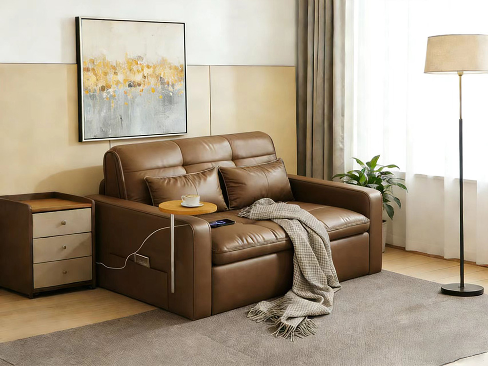 Sofa-to-bed conversion, effortlessly switch between sitting, reclining, and sleeping.Manual folding operation frees up space instantly—sofa transforms into bed. Lie down and sleep, enjoying ultimate comfort.