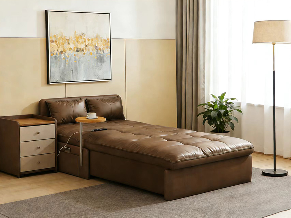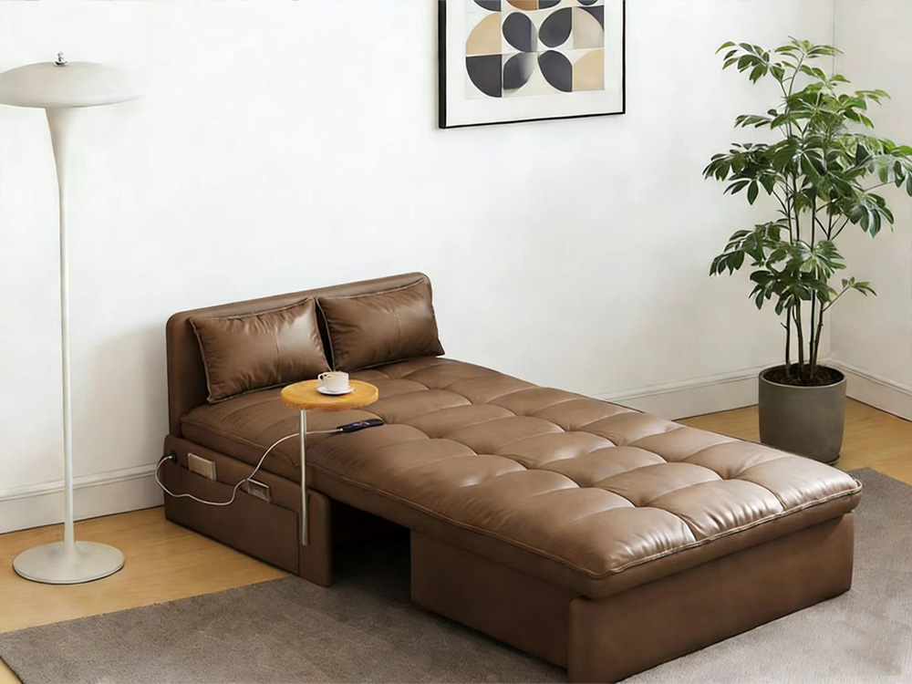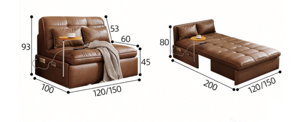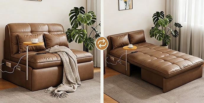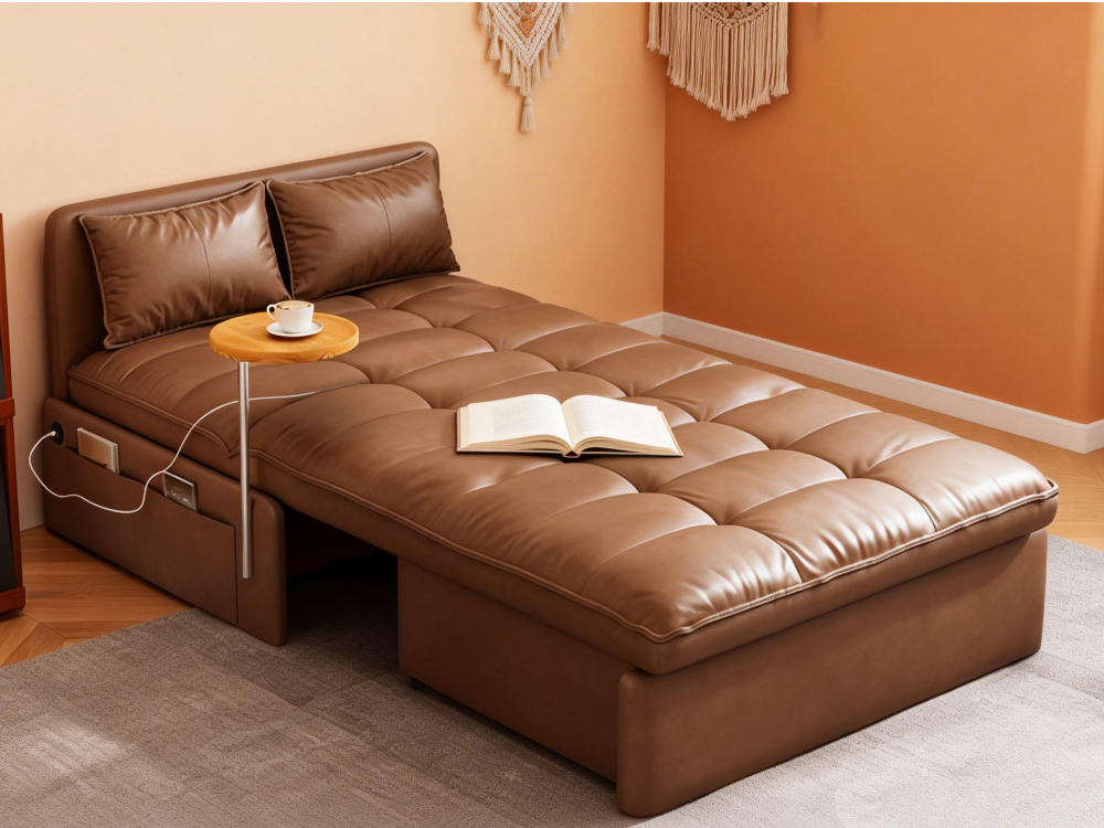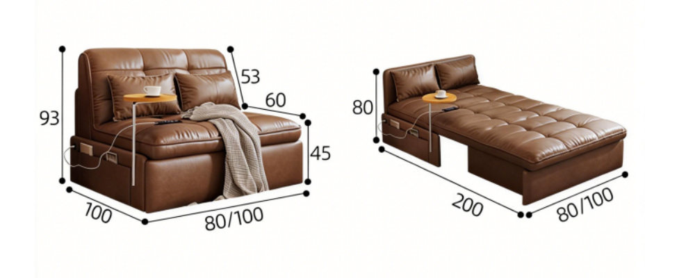 Sofa-to-bed conversion, effortlessly switch between sitting, reclining, and sleeping.Manual folding operation frees up space instantly—sofa transforms into bed. Lie down and sleep, enjoying ultimate comfort.