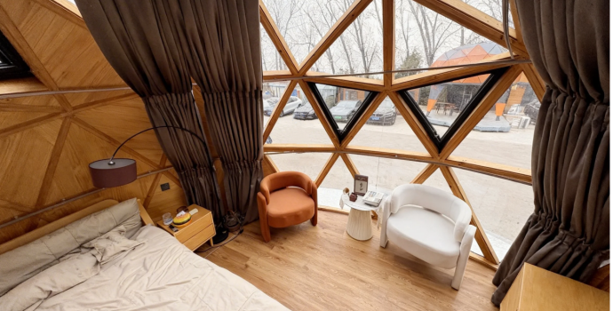 Compact yet fully equipped, the interior space is thoughtfully designed despite its modest size, featuring a comfortable king-size bed, private bathroom, air conditioning, underfloor heating, and other modern amenities. The design leans toward minimalist, contemporary, or natural wood aesthetics. Equipped with a smart control system, guests can manage lighting, curtains, music, and more via a smart control panel or mobile app.