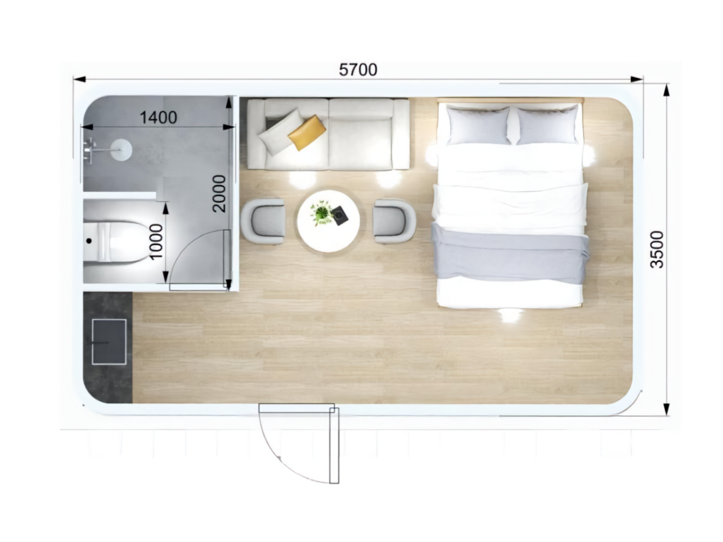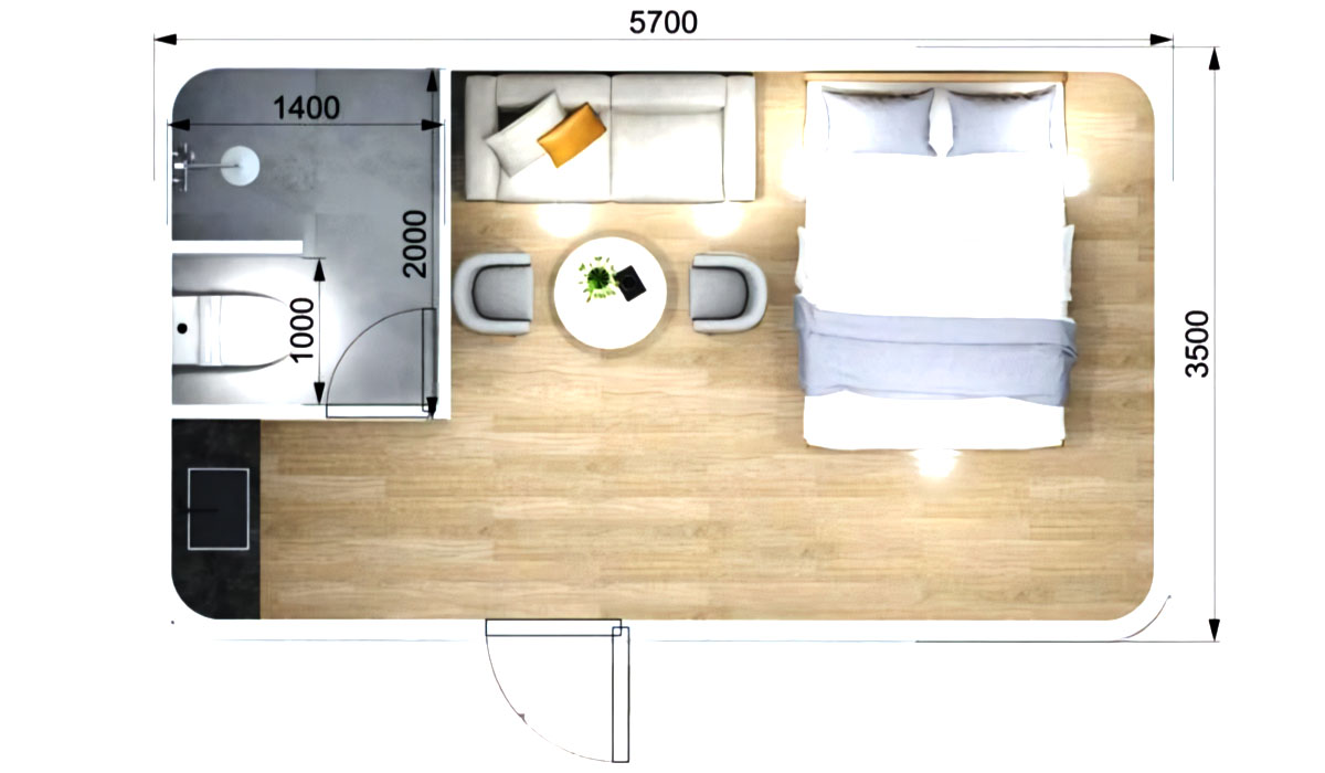| Overall Size(L*W*H) | 5700 × 3500 × 3200 mm | Floor Area | 19.9m2 |