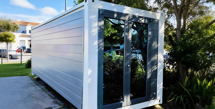 Modular container housing utilizes high-strength steel and standardized bolted connections, enabling rapid on-site disassembly into independent modules without damage. These standardized-sized modules facilitate efficient land or sea transport with low logistics costs. The structures can be repeatedly rebuilt and reused at different locations as needed, significantly reducing overall operational and relocation expenses while enabling resource recycling.