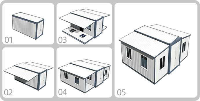 The double-wing expandable container house can be installed in just ten minutes. Its integrated foldable design allows for rapid deployment and folding according to demand, shortening construction cycles and reducing transportation costs. It offers excellent scalability—a single unit can transform into three, enabling flexible spatial adaptation. Advanced thermal insulation and waterproofing technologies ensure the structure's longevity and comfort in harsh environments. It is widely applicable for residential, dining, office, and other spaces.