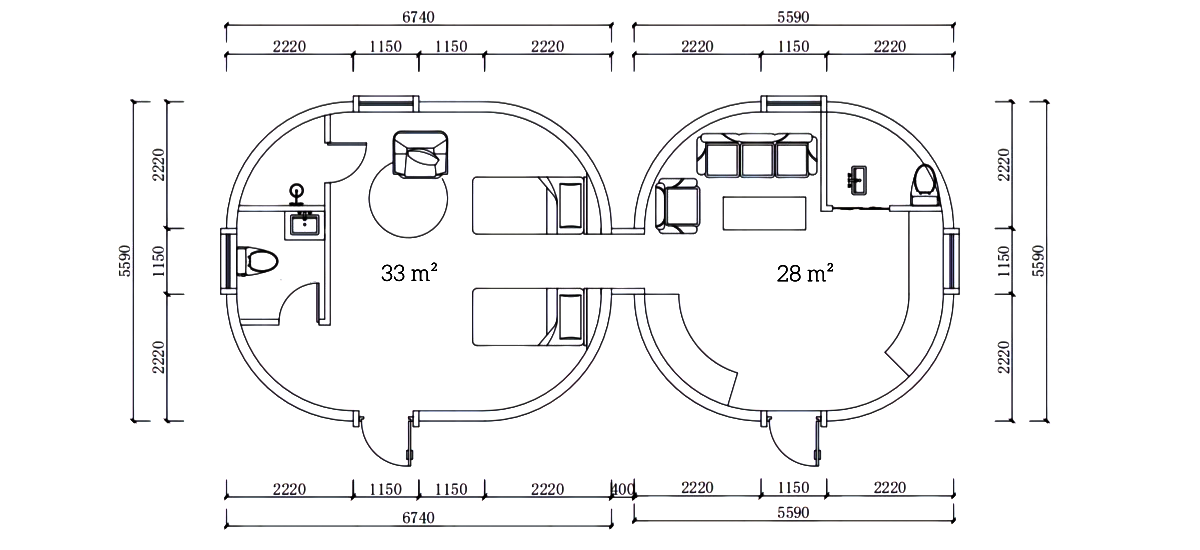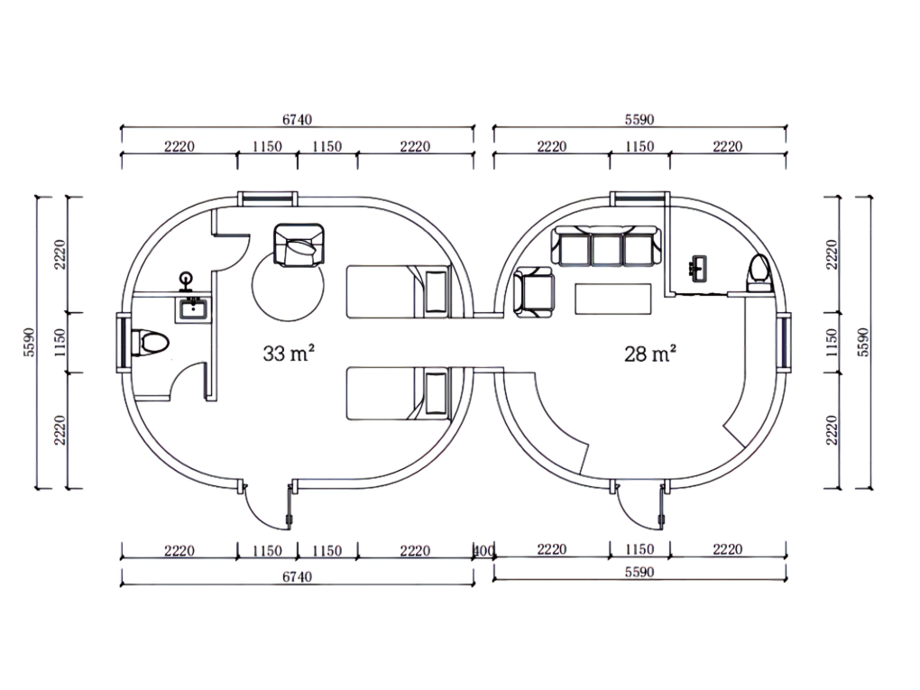 The Duolaibao Prefab Dome House uses high-density EPS hollow modules as its main building units, forming a highly integrated shell structure. This design provides strong toughness and efficient energy dispersion, offering superior seismic resistance compared with traditional masonry buildings.