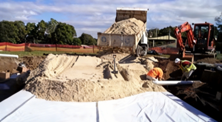 Lay geotextile and geomembrane
